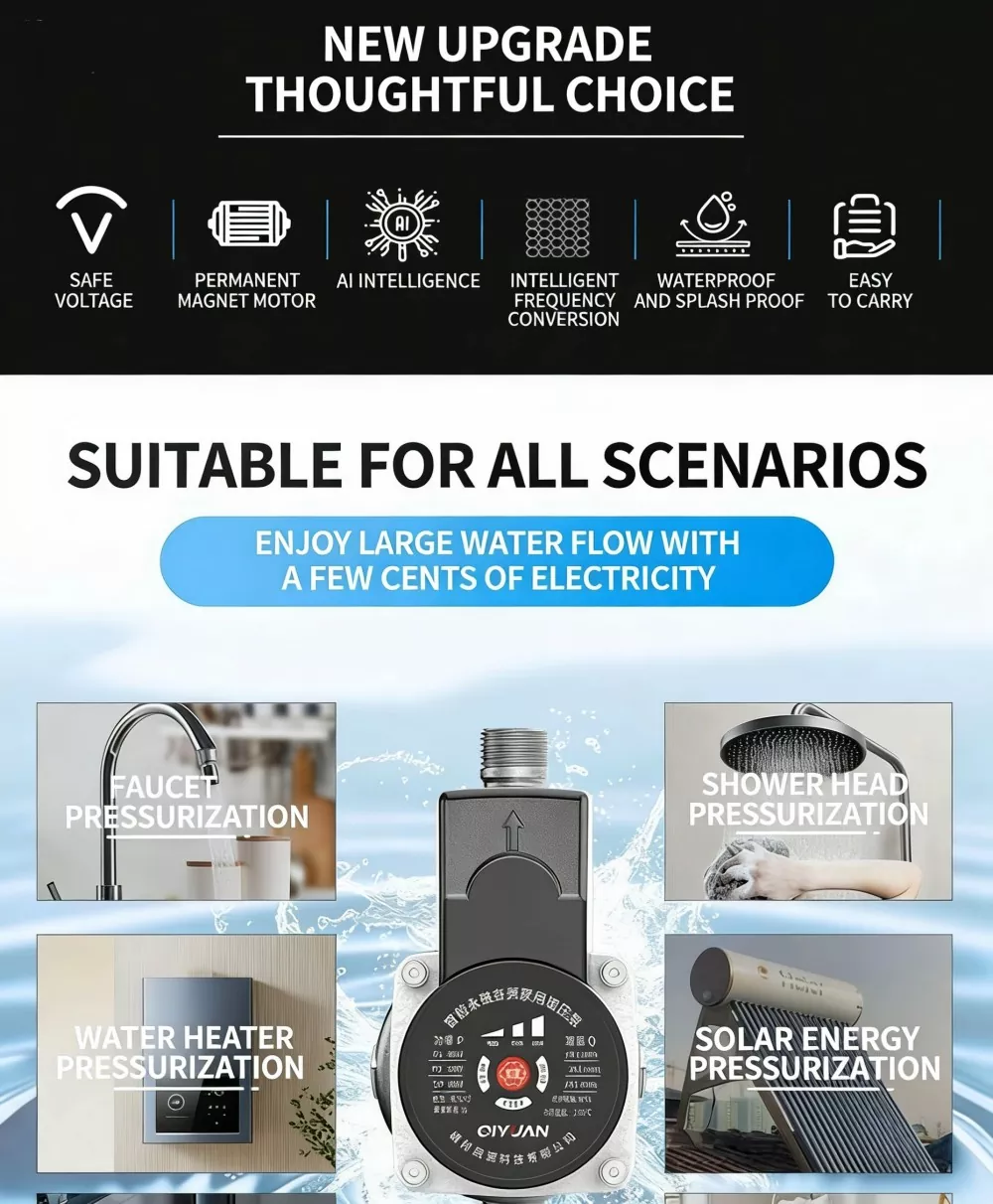 De Intelligente Permanente Magneet Variabele Frequentie Stille Boosterpomp richt zich op verschillende huishoudelijke pijnpunten van onvoldoende waterdruk en dekt volledig de volgende kerngebruiksscenario's: