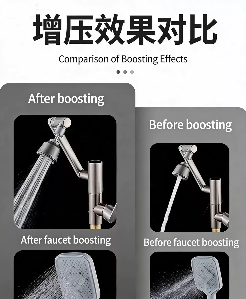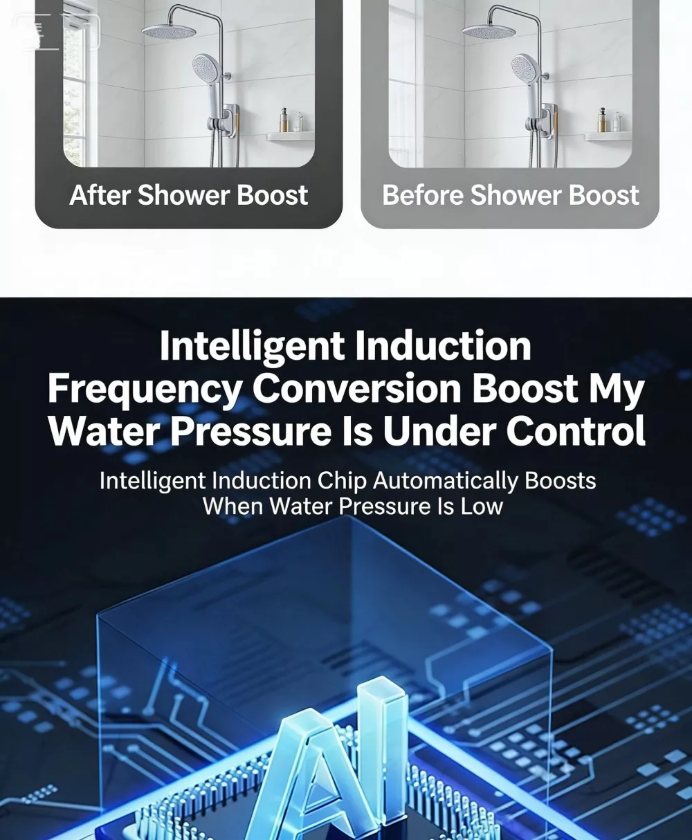 Douchekopdrukverhoging: verbetert de kracht van de douchewaterafgifte, lost de problemen van een zwakke waterstroom en fluctuerende watertemperatuur op, waardoor de douche-ervaring aanzienlijk wordt geoptimaliseerd.