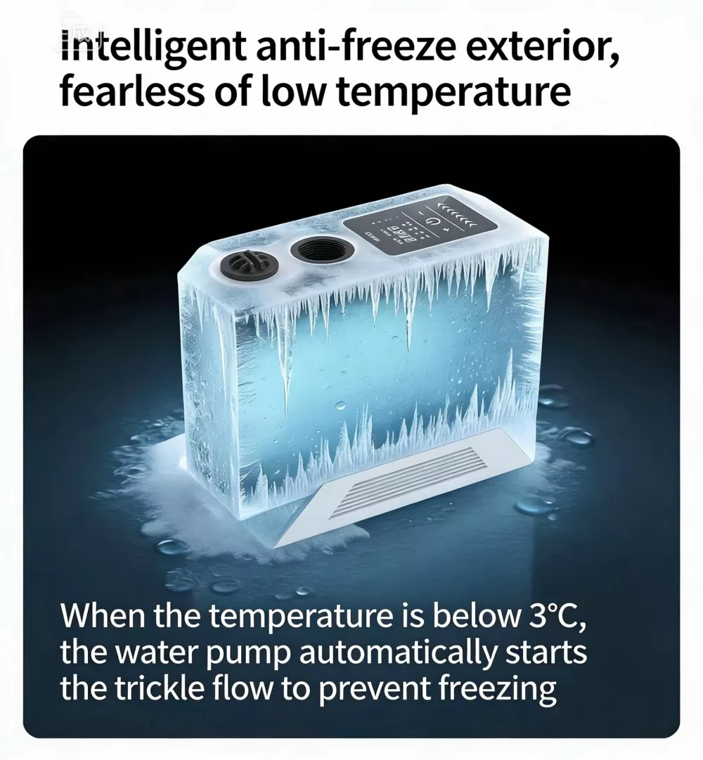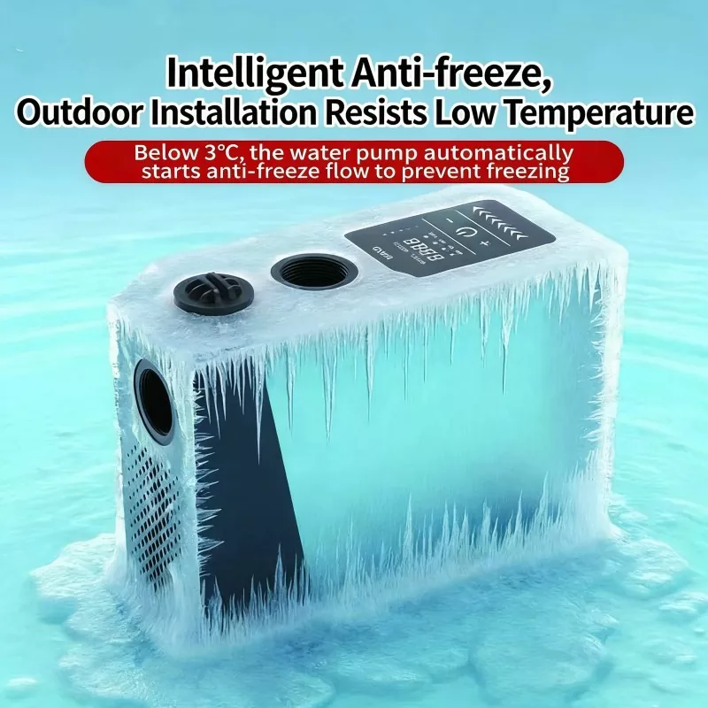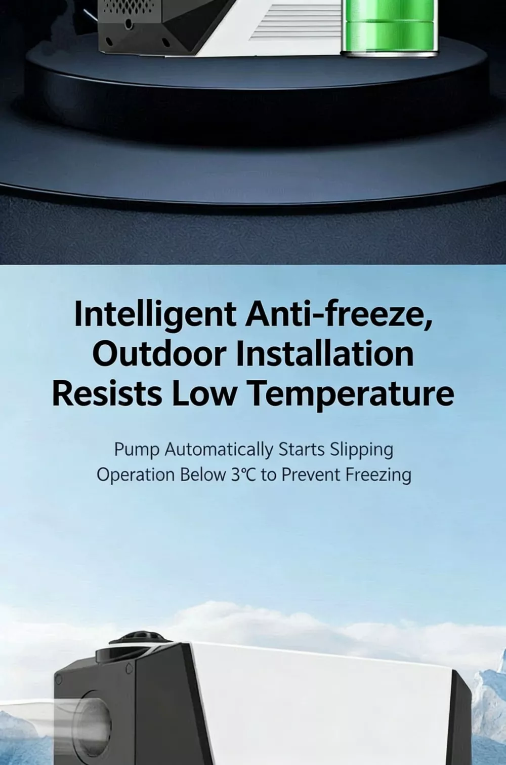 Het ingebouwde intelligente antivriesverwarmingssysteem wordt automatisch geactiveerd wanneer de omgevingstemperatuur onder de -3°C daalt, waardoor het barsten van de pomp bij koud weer wordt voorkomen en de levensduur van de apparatuur wordt verlengd, ideaal voor koude gebieden.