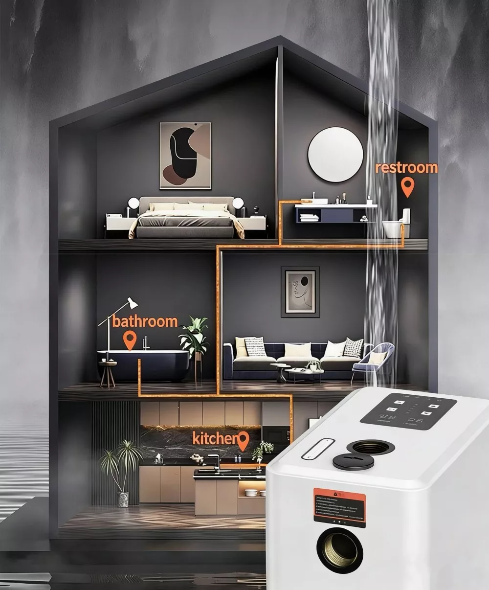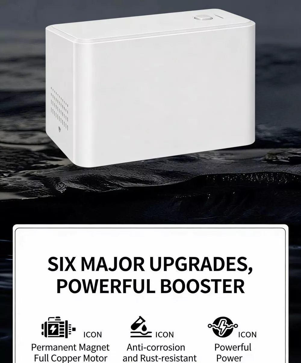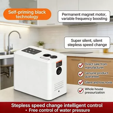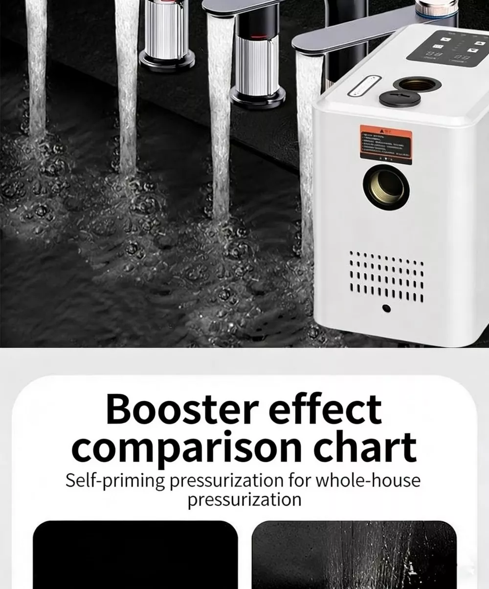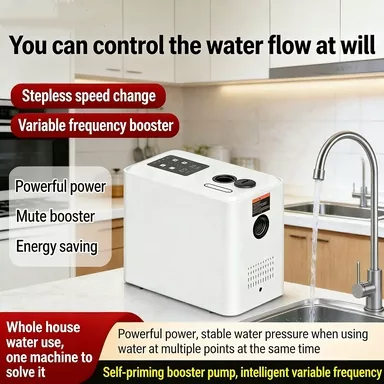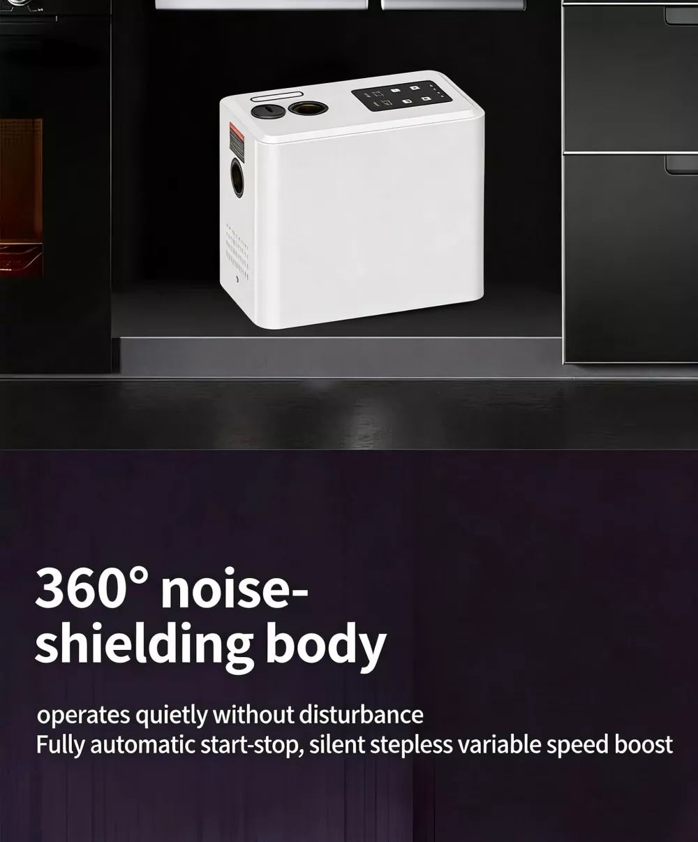Hogesnelheidsmotor: de ingebouwde hogesnelheidsmotor van 6500 tpm zorgt voor een hoog vermogen, levert een sterke en stabiele wateropbrengst met een groot debiet en lost het probleem van onvoldoende waterdruk in het huishouden grondig op.