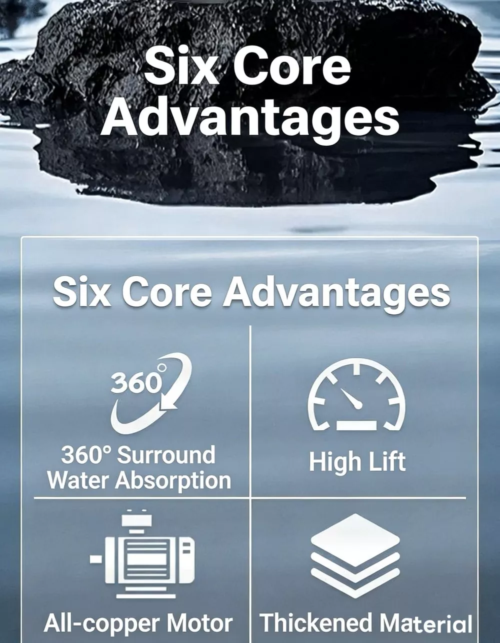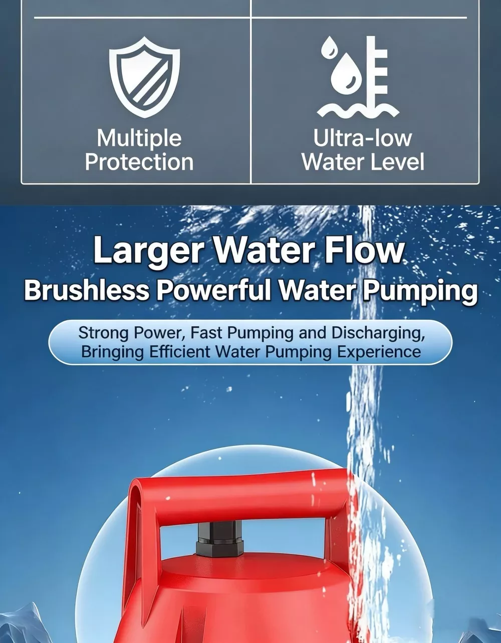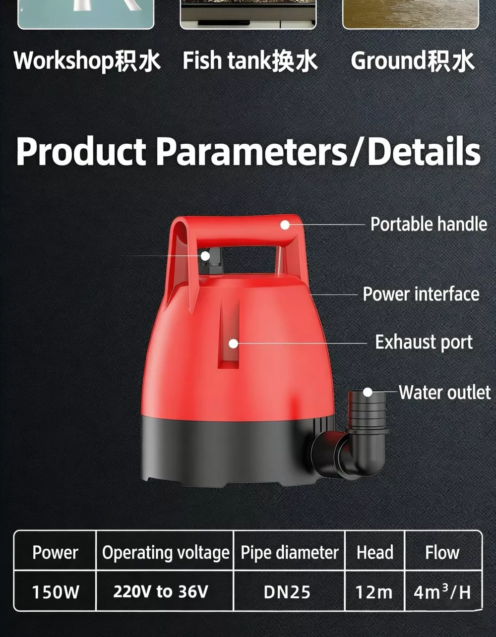 De dompelpomp is een compacte, uiterst efficiënte afvoeroplossing, ontworpen voor zowel huishoudelijk als licht commercieel gebruik. Met ultralage zuigkracht, 360° waterinlaat, automatische bescherming en stille werking, levert het een stabiele, veilige en gemakkelijke waterverwijdering in meerdere scenario's. Deze betrouwbare dompelpomp lost effectief problemen op met opgehoopt water, tankreiniging en afvoer van stilstaand water, waardoor het een praktische keuze is voor dagelijks gebruik.